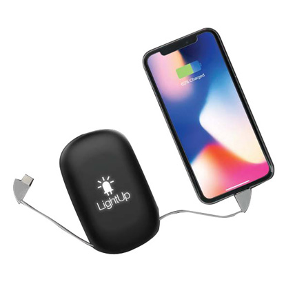 10000 mah powerbank with light-up logo function for optimal brand exposure. The suction pads help in secured attachment and convenient detachment of the powerbank from your phone, and the built-in Micro USB, Lightning and Type C cables ensure any device can be charged without looking for the right cable. Packed in a Gift box. Input & Output- 5V/2.1A, Wireless Output- 5V/1A 5W.