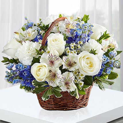 Blue and White Blooms Basket