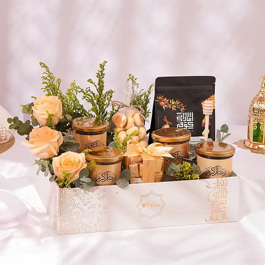 Wooden Honey Dripper 16cm Emirati Colombia Arabic coffee in a Biege Ramadan Square Shape Box