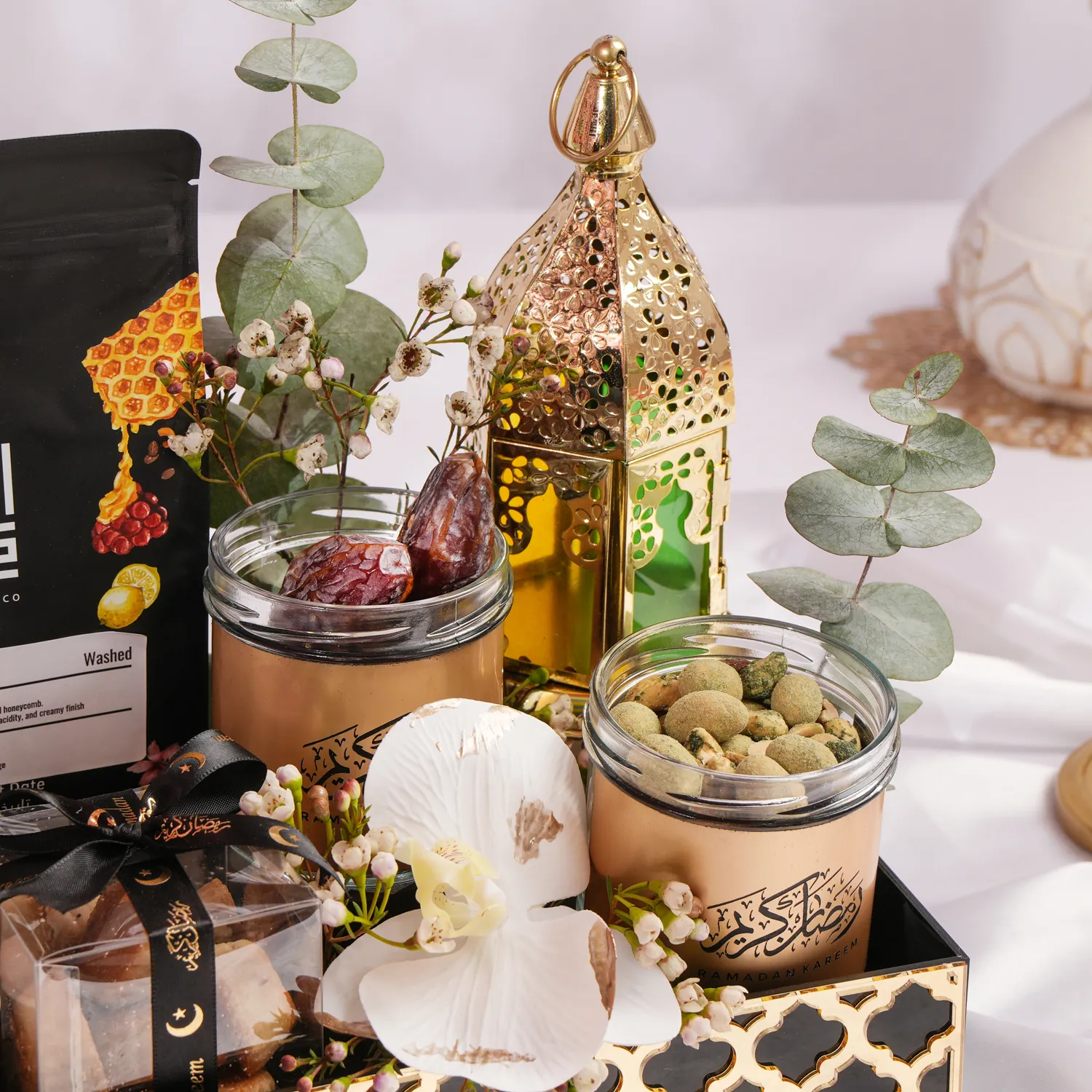 Arranged beautifully in a Black acrylic ramadan tray